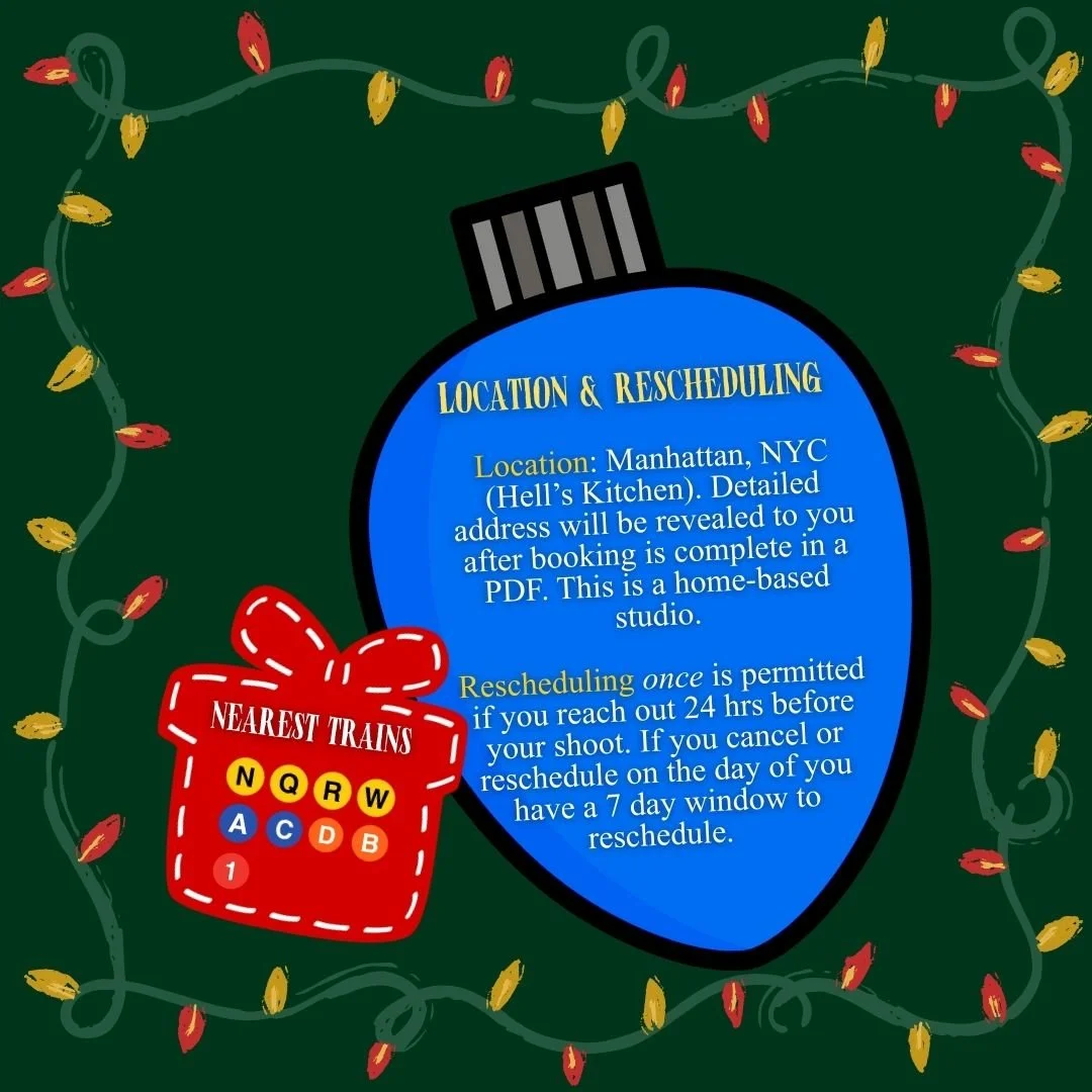 • In most cases, we provide the props, makeup, and set, so you can just show up and enjoy the experience! If we do not, we will let you know in the booking details.